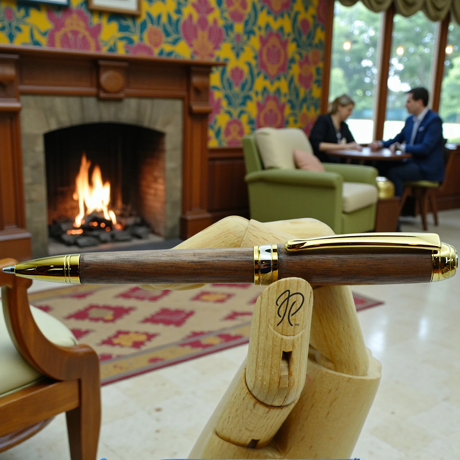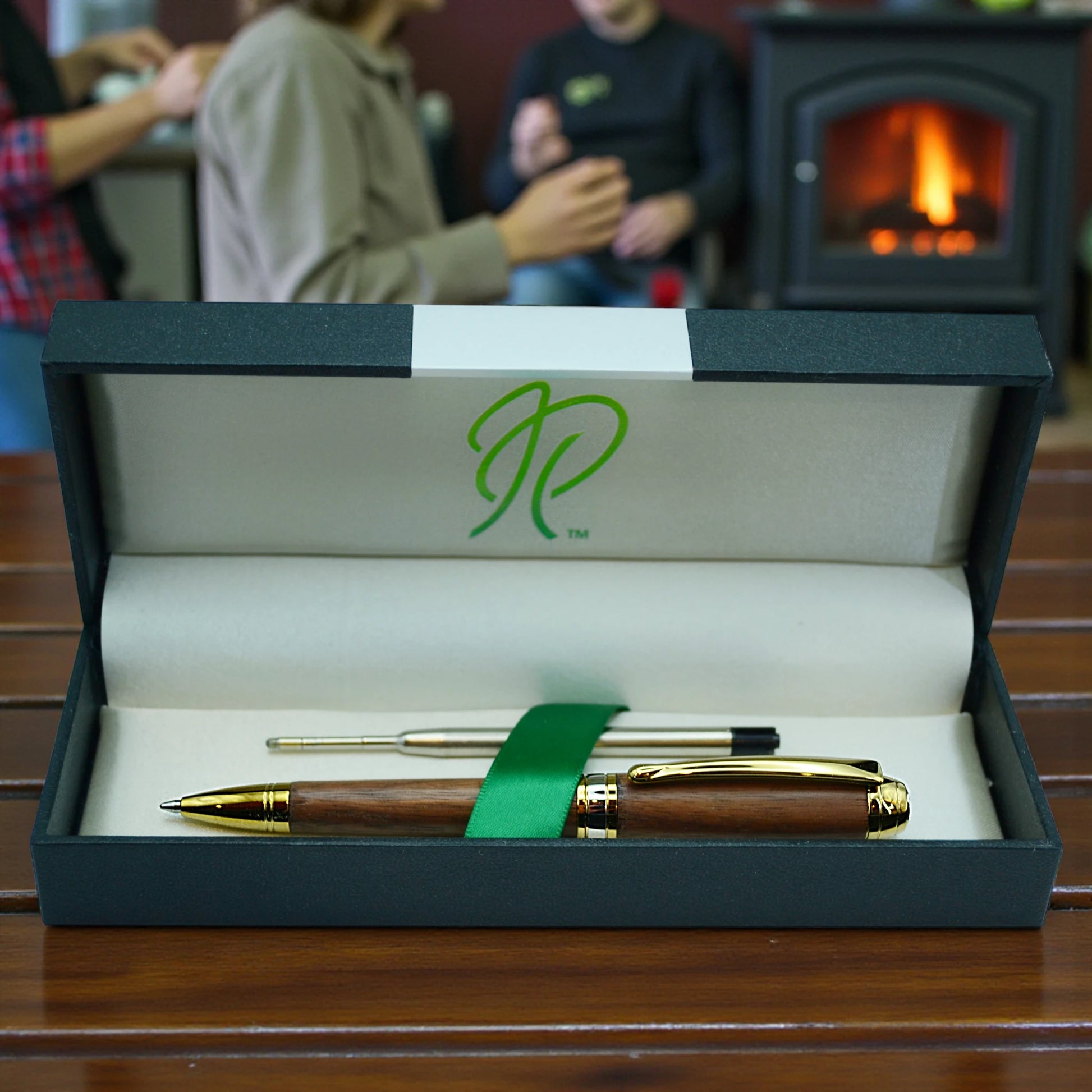 Each pen is individually hand-turned, sanded and polished to a refined finish, then complemented with jewellery-grade Gold Titanium trim for a warm, luxurious aesthetic. Fitted with an all-Swiss-made ballpoint refill, it delivers a smooth, reliable writing experience ideal for daily writing, business use or meaningful gifting. Refills are available worldwide, supporting long-term use and sustainability.